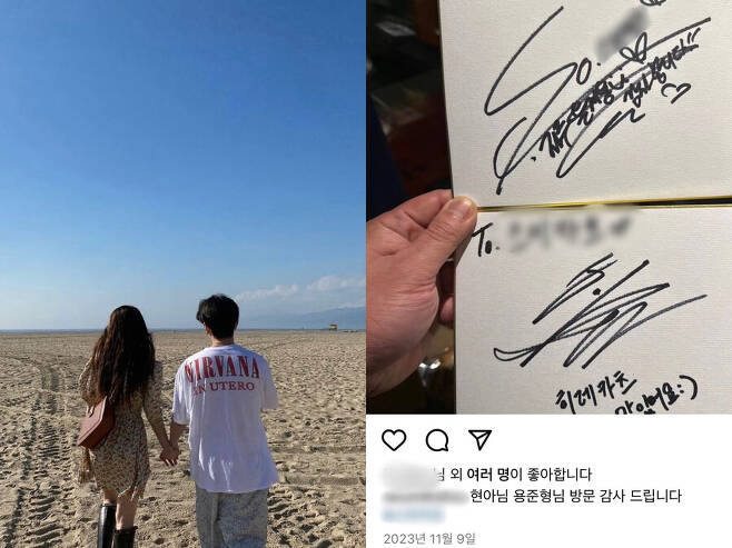 지난해 11월 9일, 한 일식당의 공식 SNS 계정에는 "현아 님, 용준형 님의 방문에 감사드립니다"라는 글과 함께 두 사람의 사인이 담긴 사진이 게시되었다.